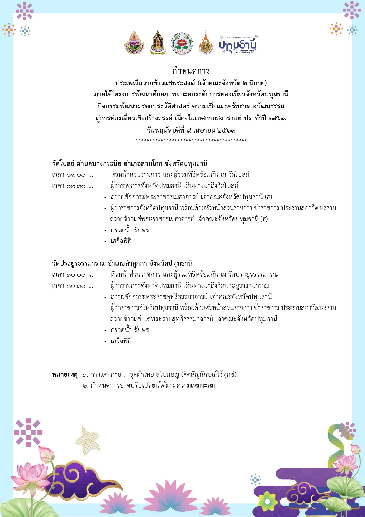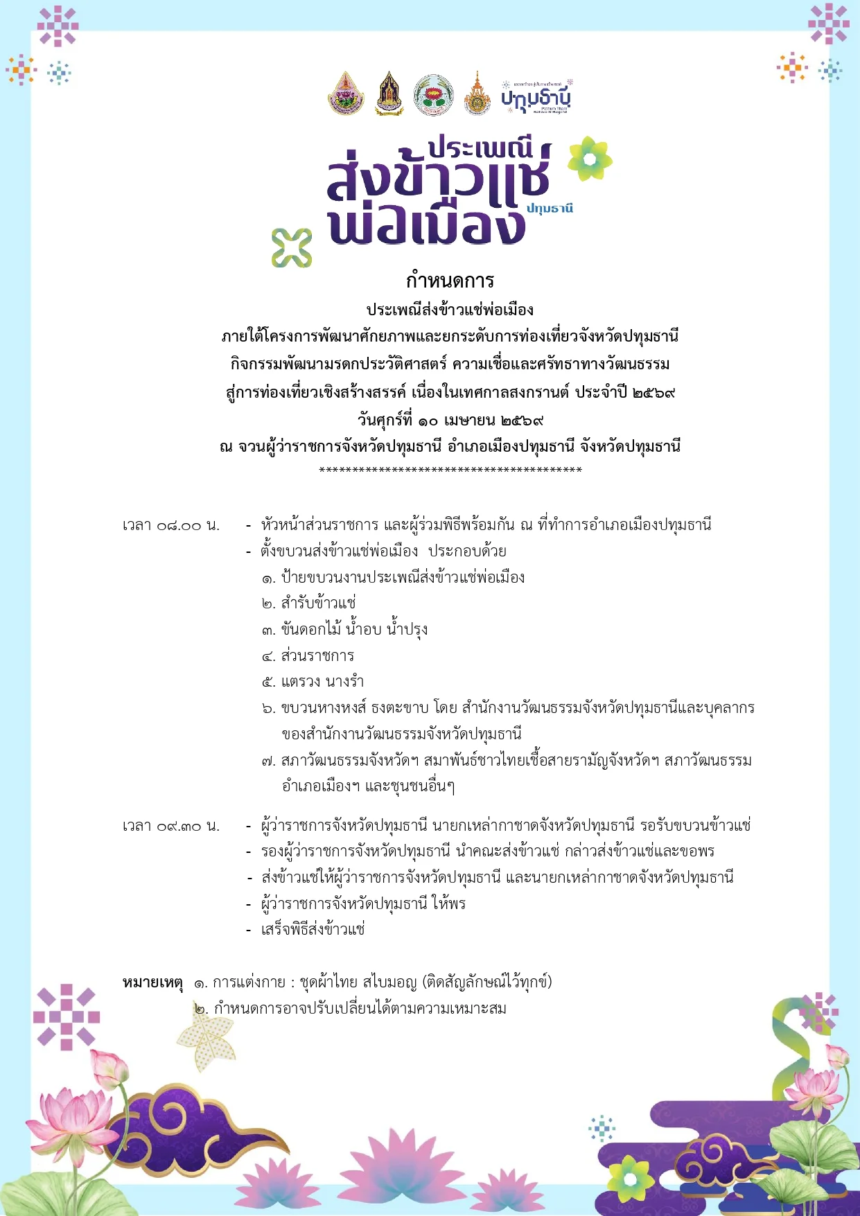 สืบสานประเพณีวิถีมอญ จังหวัดปทุมธานี จัดกิจกรรม “ส่งข้าวแช่พ่อเมือง” เนื่องในเทศกาลสงกรานต์ ประจำปี 2569