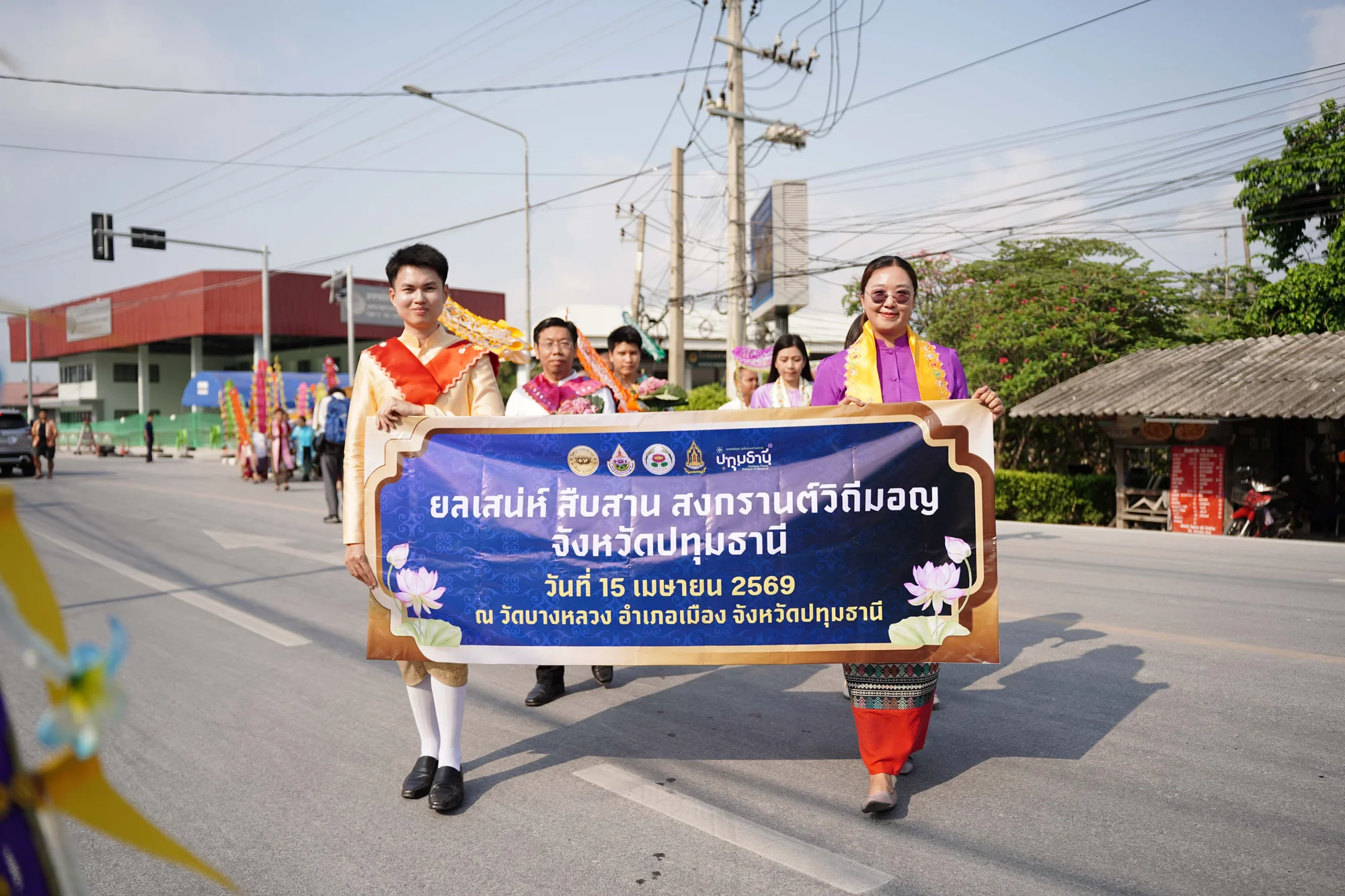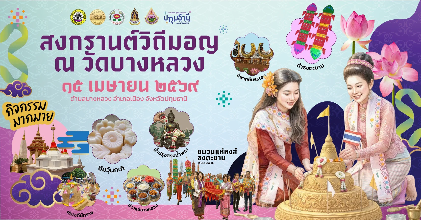 ผู้ว่าฯ ปทุมธานี นำพุทธศาสนิกชนร่วมพิธีแห่หงส์ธงตะขาบ และห่มผ้าเจดีย์ทรงรามัญคู่ ณ วัดบางหลวง พร้อมถวายข้าวแช่เปิบสำรับคาวหวาน รับศิริมงคลสงกรานต์ปี 2569