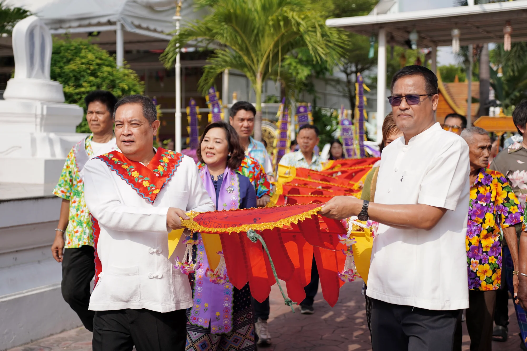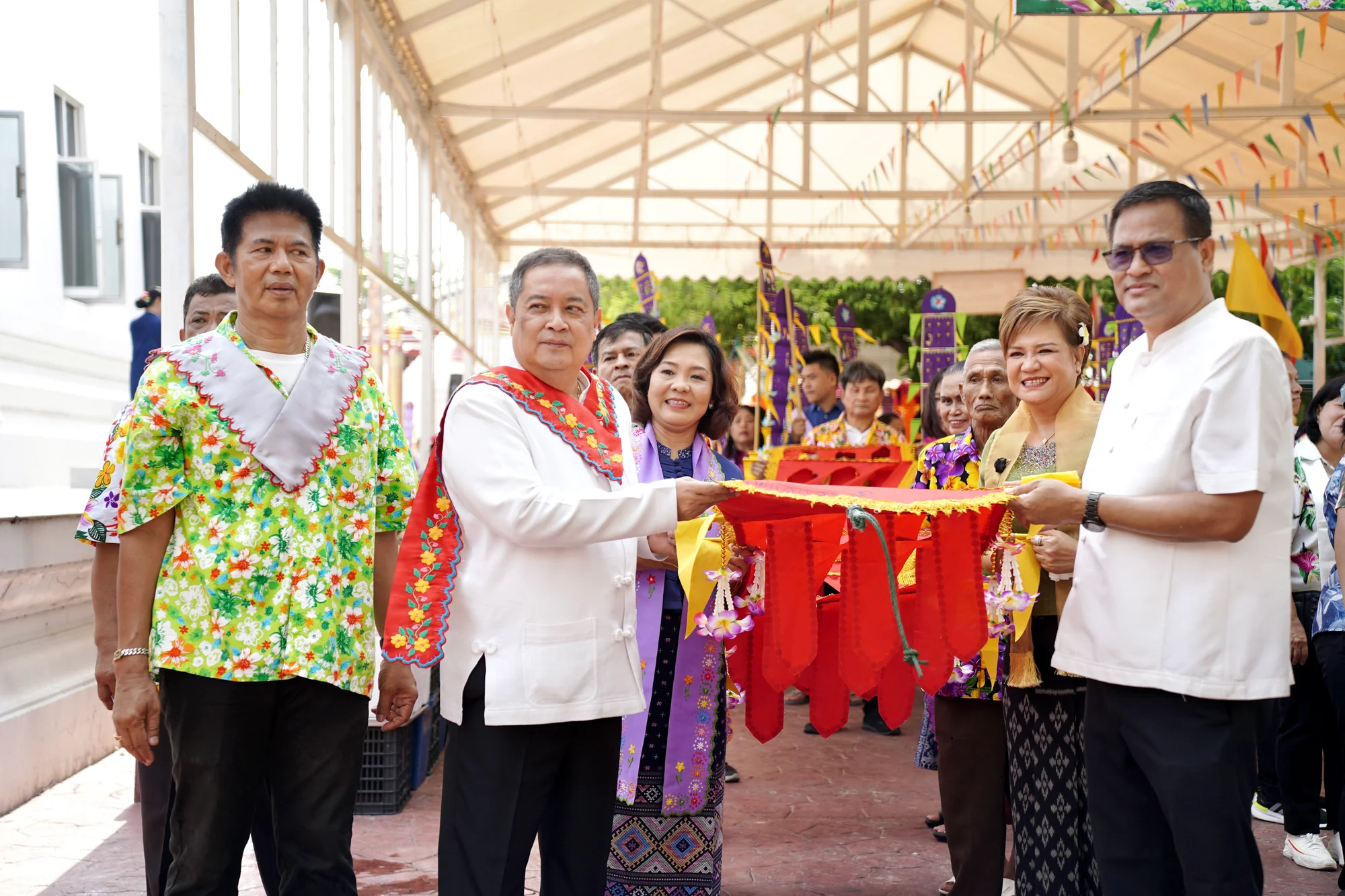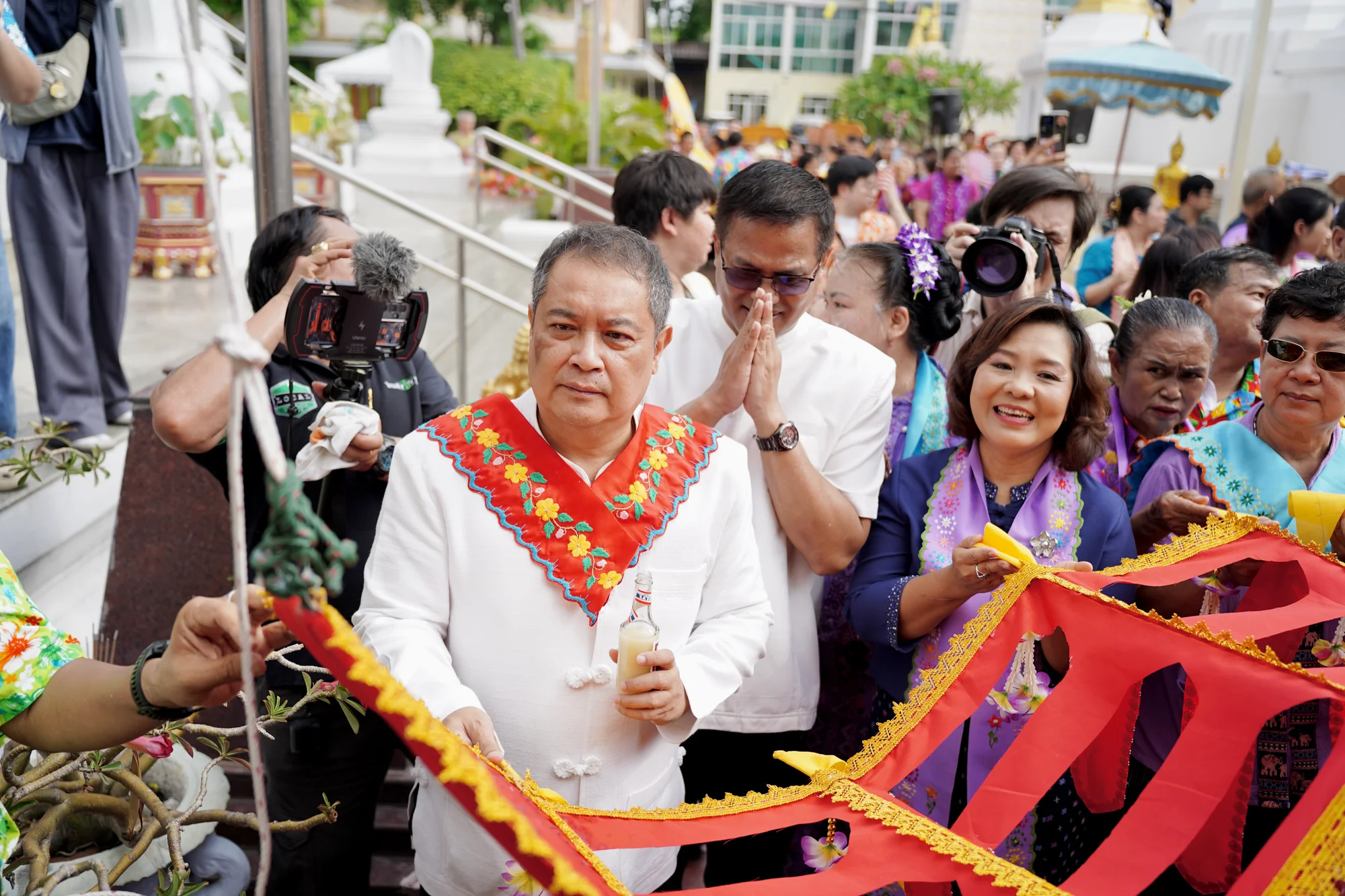 ผู้ว่าฯ เอกวิทย์ ร่วมสืบสานประเพณีแห่หงส์ ธงตะขาบ ห่มผ้าเจดีย์ ยกเสน่ห์ สืบสาน สงกรานต์วิถีมอญชุมชนวัดบางหลวง